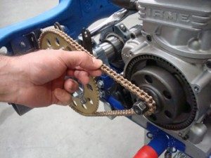 C’est celle qui est la plus courante en mécanique moto. Elle a l’avantage de délivrer une puissance optimale, ce qui fait d’elle la transmission la plus utilisée lors d’une course moto. Cependant la transmission par chaîne exige beaucoup d’entretiens et à intervalles réguliers. Cela va du graissage au remplacement des certaines pièces défectueuses de la chaîne et l’addition peut très vite augmenter avec l’usure.